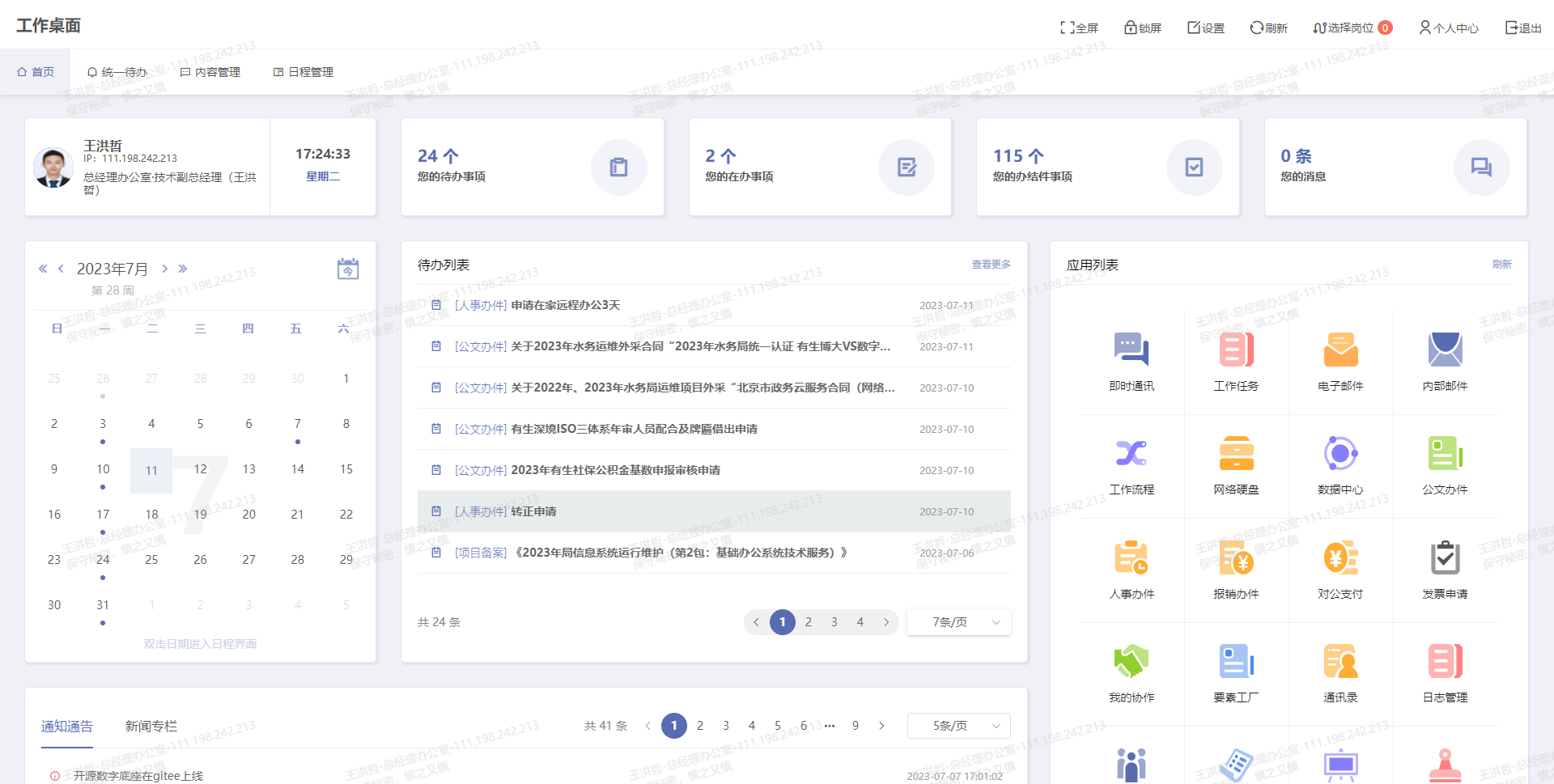 工作桌面、工作流程、即時通訊、網(wǎng)絡硬盤、電子郵件五大核心部件